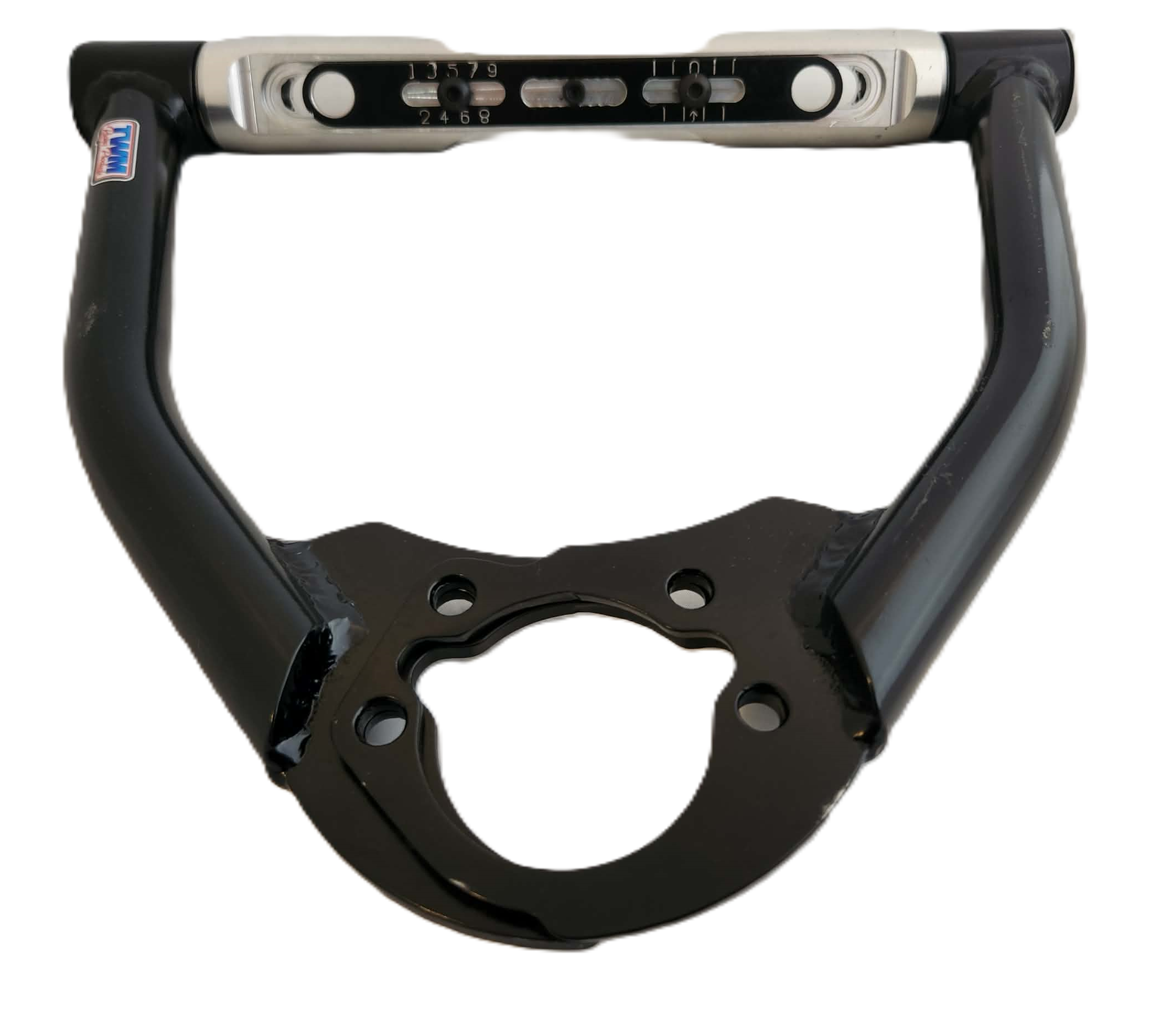 TWM Late Model Upper Control Arms are made of .095 DOM tubing and come with a 6” bolt pattern aluminum cross shaft with an adjustable 1/2” offset.
