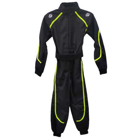 Full Bore's lightweight Polyester/Cotton Blend Children's Go Kart suits are the perfect entry in to the racing world. These Go Kart suits are made with cuffed arms and legs to allow a good fit for all sizes of Children. They are made with a single direction zip and velcro waist cuff.