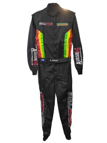 FULL BORE Race Gear's CUSTOM single layer suit is manufactured to provide Driver Safety and comfort. Made from quality Cotton, these suits are hardwearing.