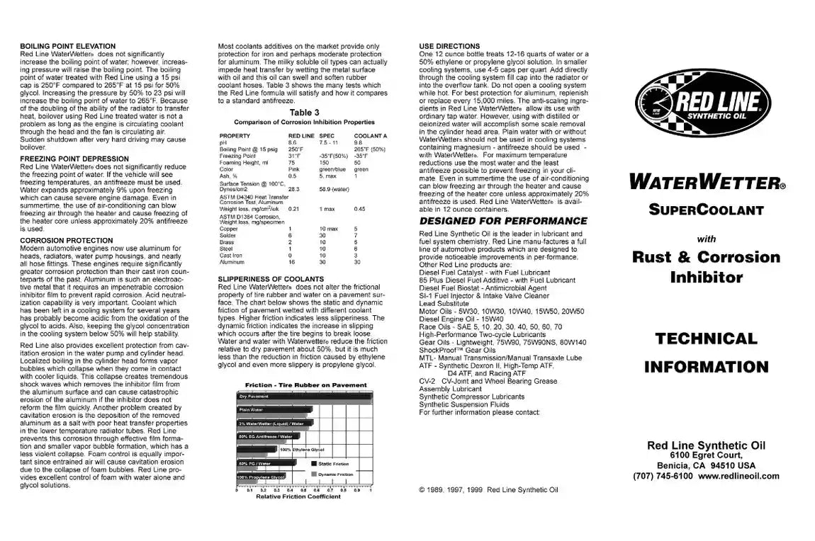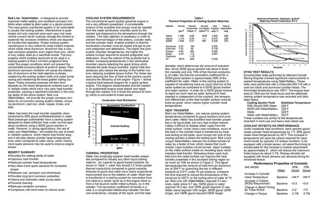 - Rust and corrosion protection allows for use of straight water in racing or reduced antifreeze levels in warm climates
