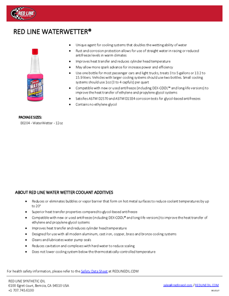 - Rust and corrosion protection allows for use of straight water in racing or reduced antifreeze levels in warm climates