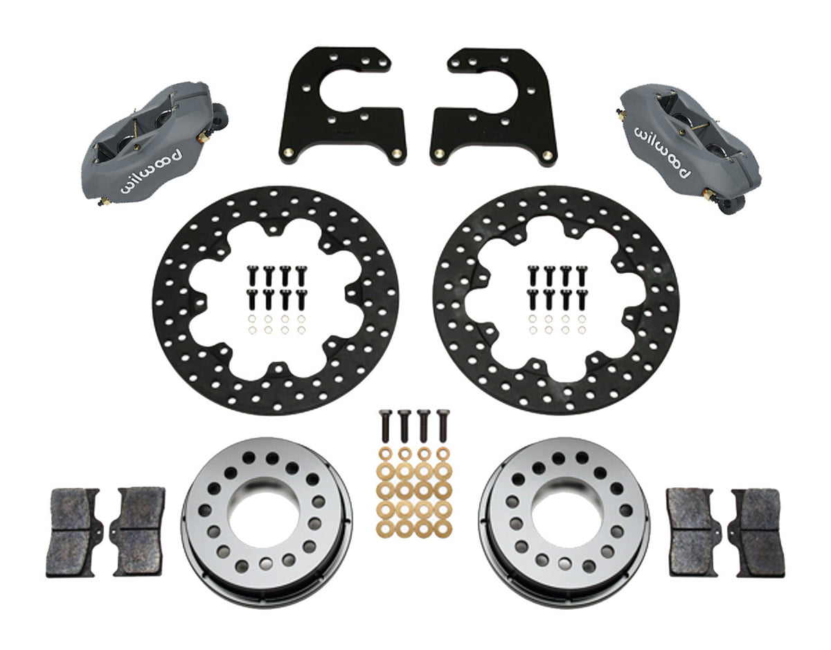 Brake System - Forged Dynalite - Rear - 4 Piston Caliper - 11.440 in Drilled Steel Rotor - Offset Hat - Aluminum - Gray Anodized - Small Ford - Kit