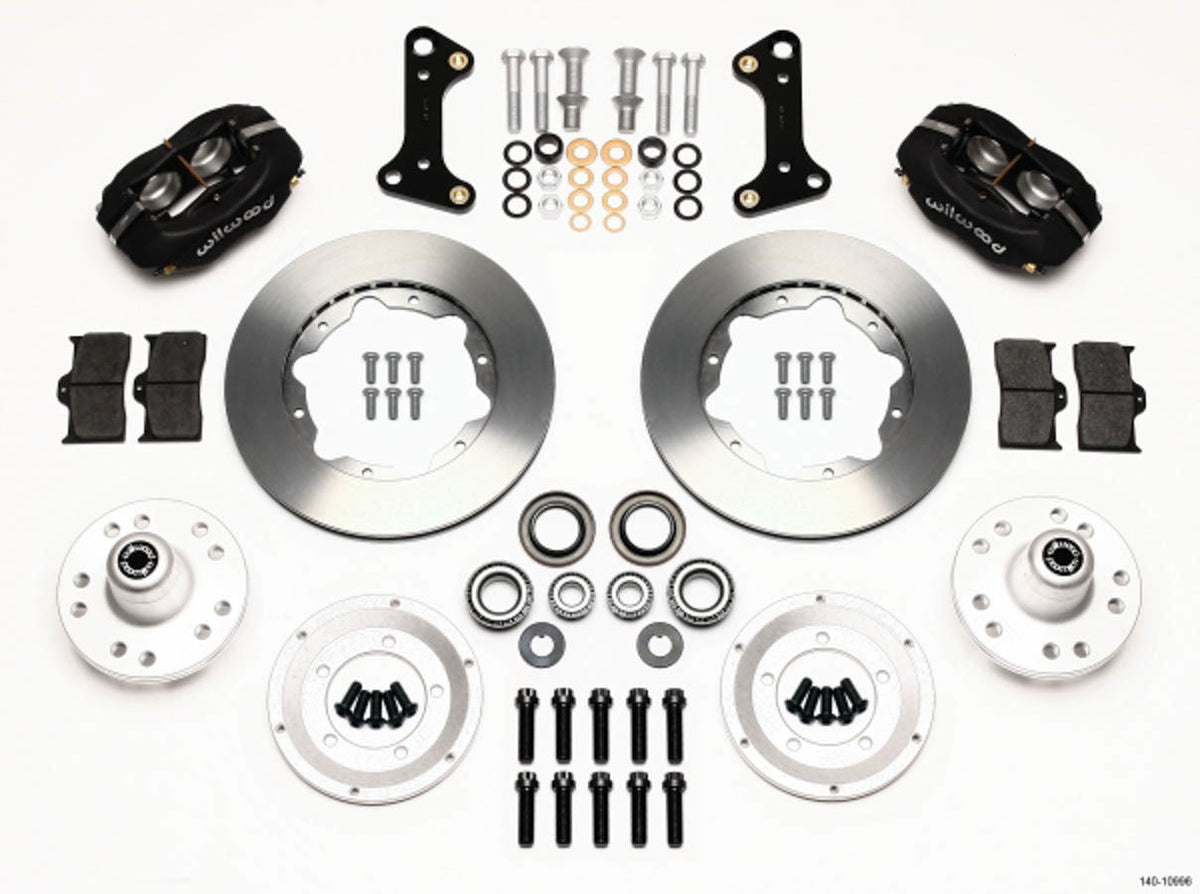 Brake System - Dynalite - Front - 4 Piston Caliper - 11.000 in Plain Iron Rotor - Offset - Aluminum - Black Powder Coat - GM A-Body / F-Body / X-Body 1964-74 - Kit