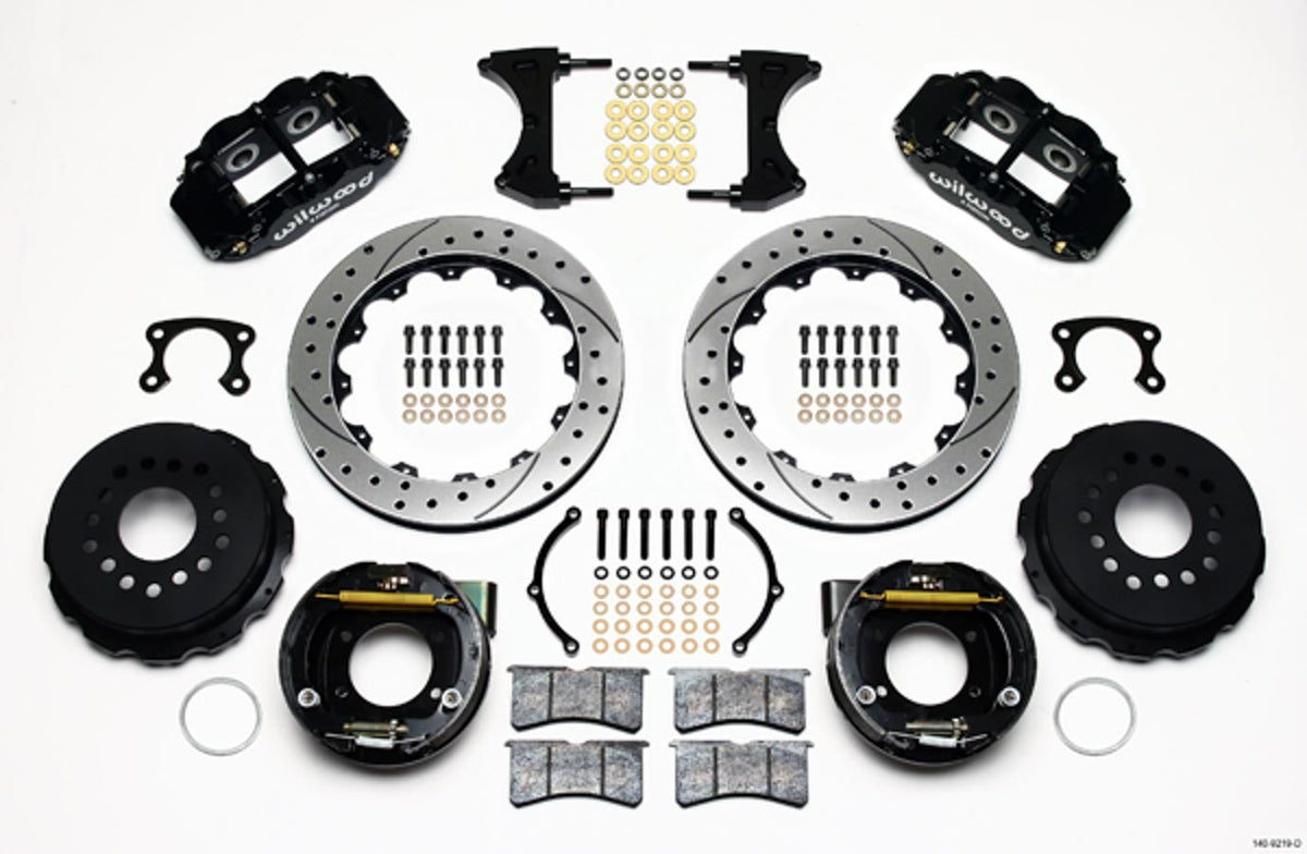 Brake System - 4R - Front - 4 Piston Caliper - 12.875 in Drilled / Slotted Iron Rotor - Offset - Aluminum - Black Powder Coat - Big Ford New Style - Kit