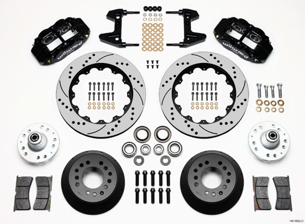 Brake System - Forged Narrow Superlite 6R Big Brake - Front - 6 Piston Caliper - 14 in Drilled / Slotted Iron Rotor - Offset - Aluminum - Black Powder Coat - Ford Mustang 1974-78 - Kit